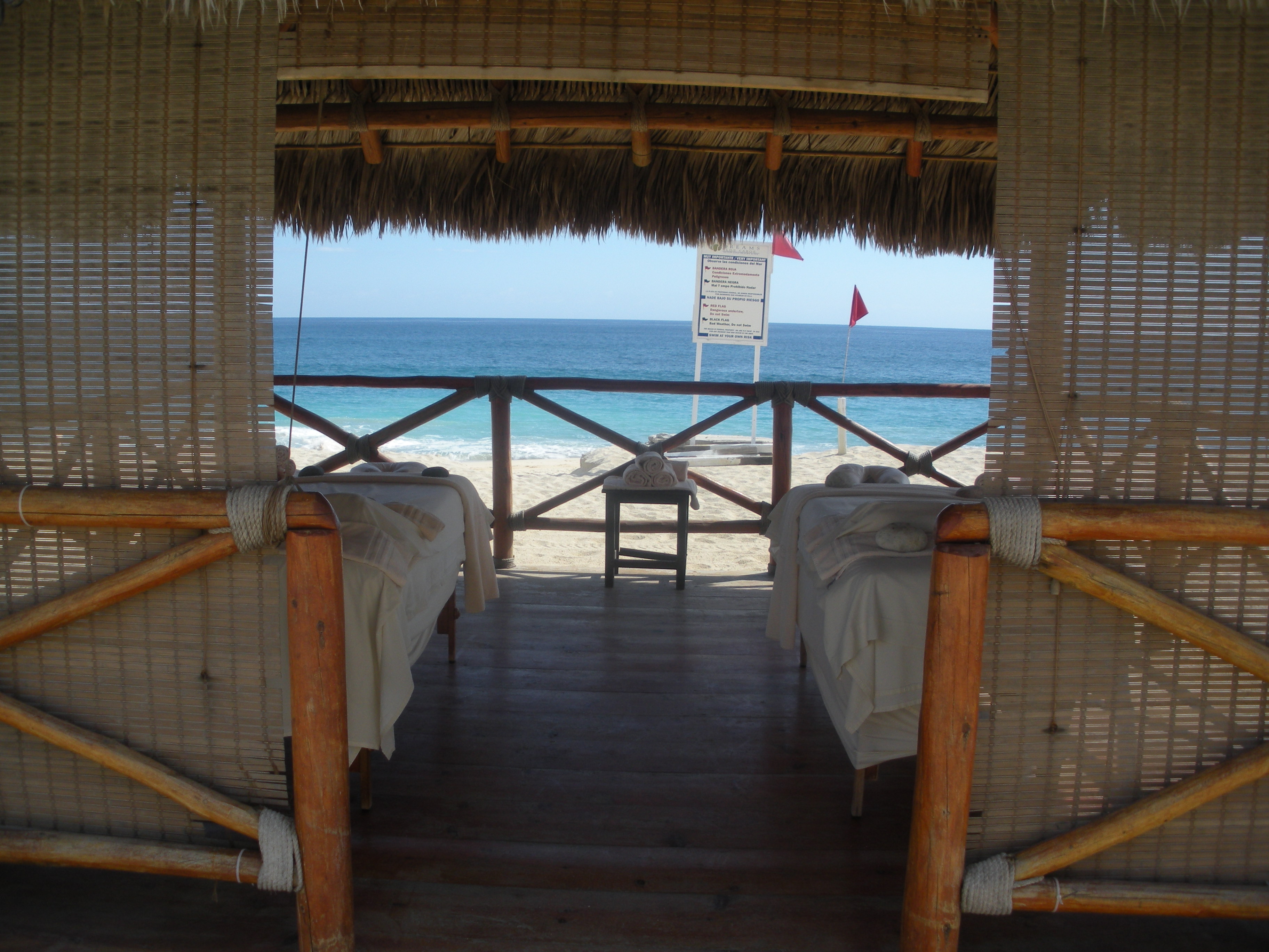 After a short wait, the couple was gathered from their respective changing rooms, and escorted to the semi-private massage hut on the beach containing two tables standing next to one another.