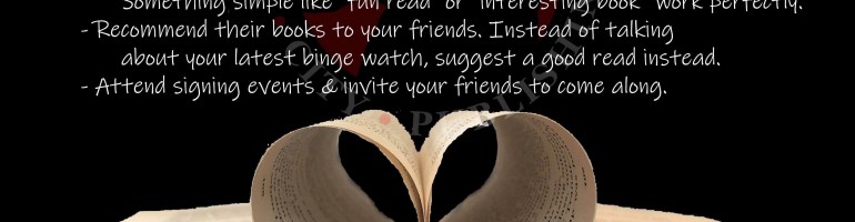 That graphic at the top of this post is the perfect place to start. All of those suggestions falls under the umbrella of “word of mouth.” Helping spread the word is the easiest, free-est, most effective way to help support an up-and-coming author. 80% of the ideas above require minimal time, effort, and money.